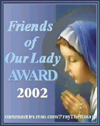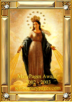 Enclosed I send you the Marypages Award 2002-2003 for your excellent homepage. God bless, |